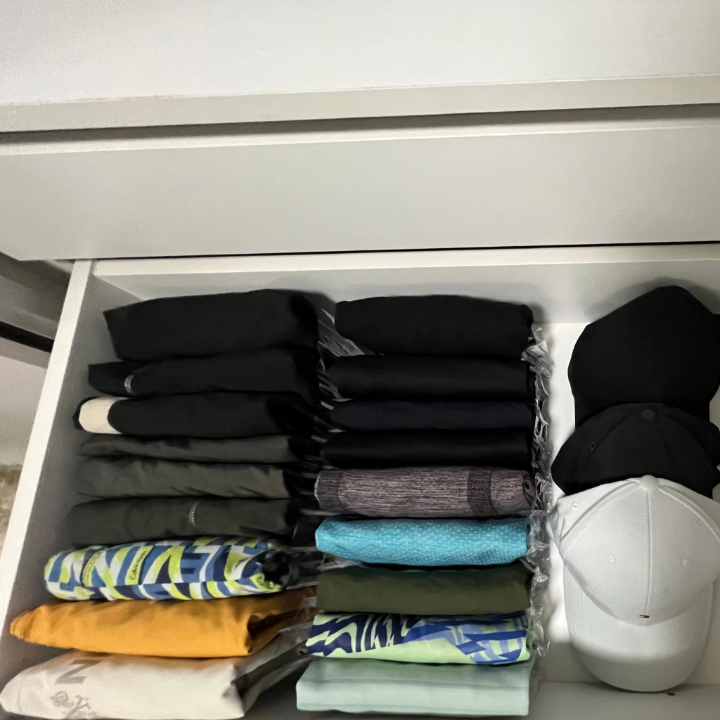 Mantém as peças dobradas e visíveis, prontas para o uso