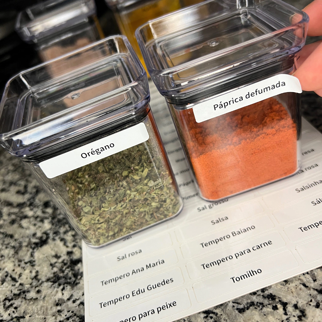 Com elas, você encontra rapidamente o que precisa, evita desperdícios e ainda deixa seus potes de temperos com um visual padronizado e elegante.