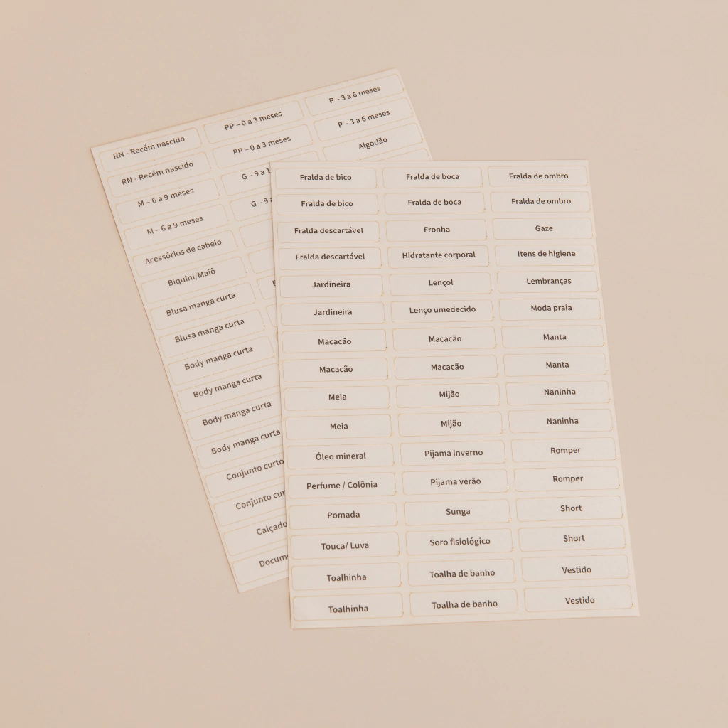 • Acompanha 5 etiquetas com fundo branco: Recém nascido, 0 a 3 meses, 3 a 6 meses, 6 a 9 meses e 9 a 12 meses - Os adesivos não vão colados nos separadores.