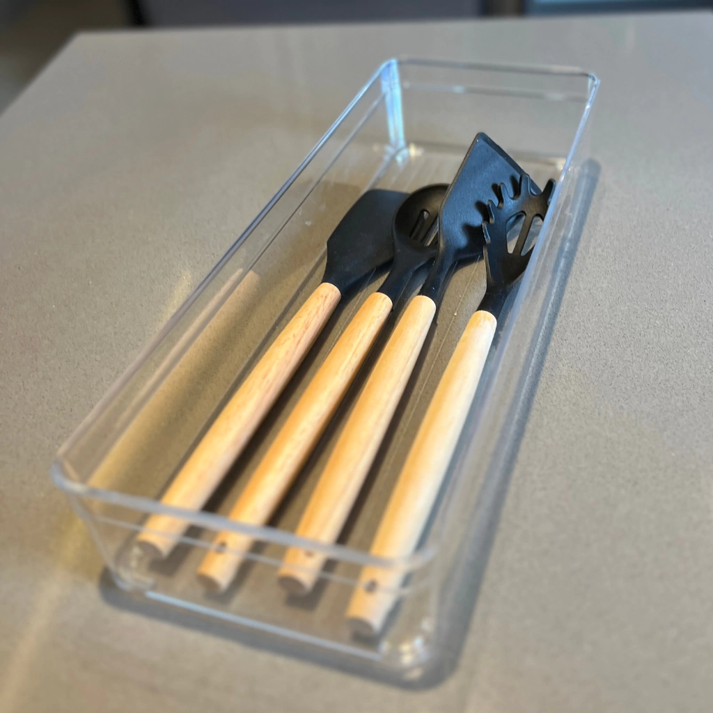 Benefícios: Visual limpo, tudo visível e categorizado, com acesso prático e otimização de espaço na gaveta ou bancada.