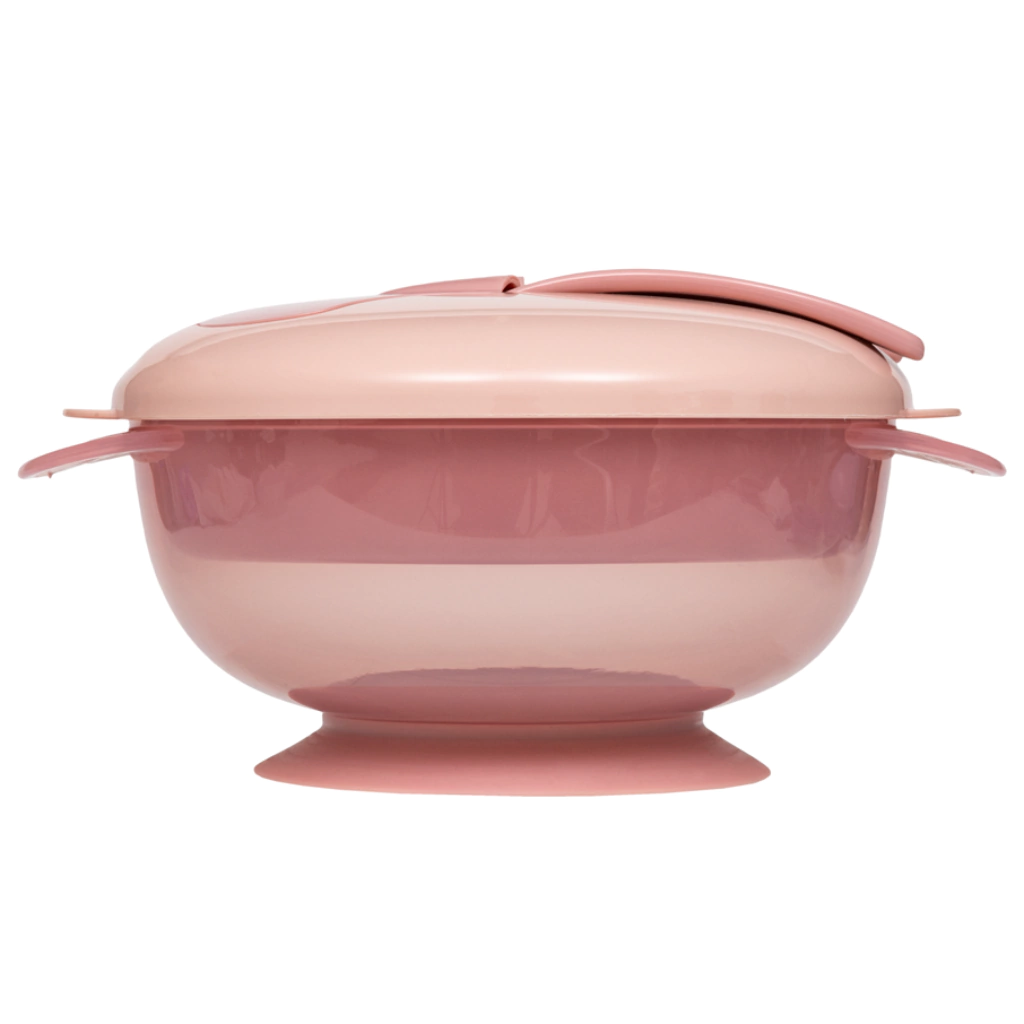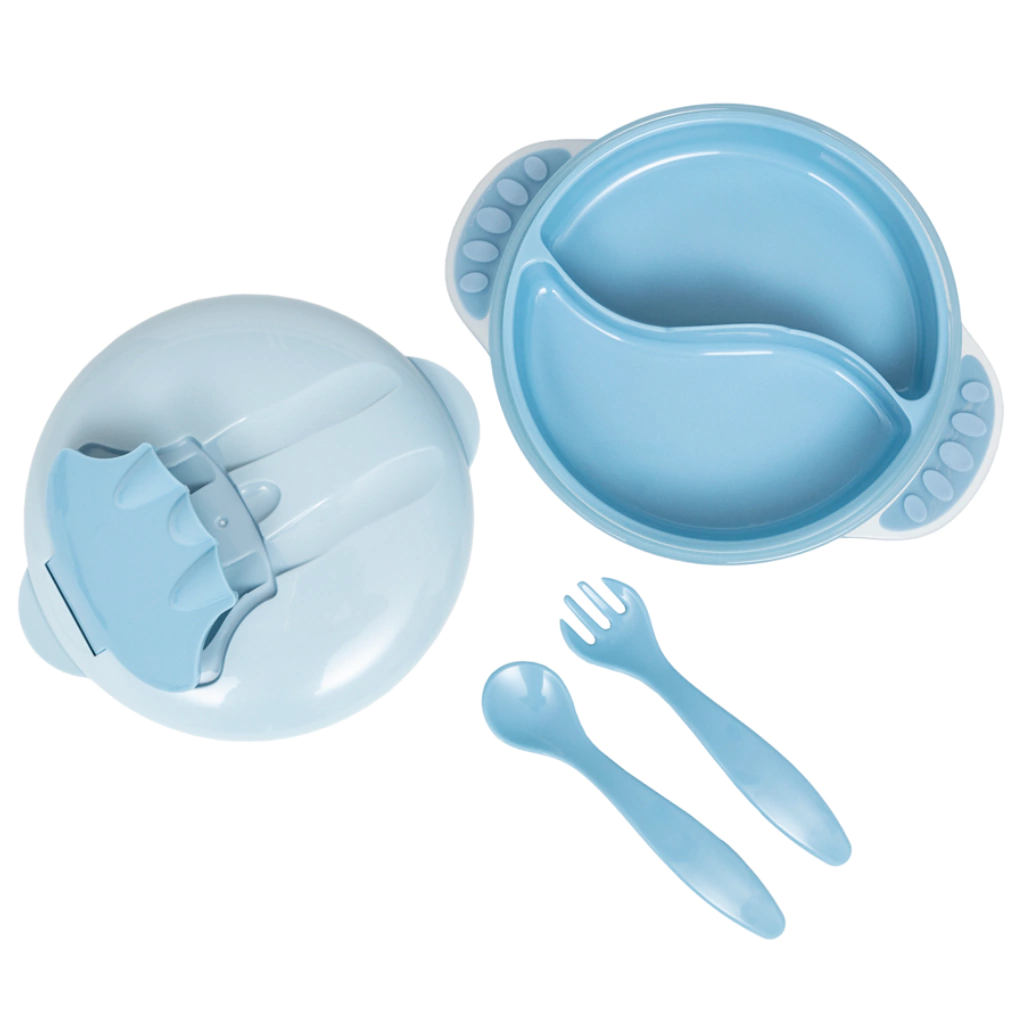 Com design funcional, o pote possui tampa protetora, divisória removível e ventosa na base para evitar que escorregue. Acompanha também talheres com pontas macias, ideais para as gengivas sensíveis dos pequenos.