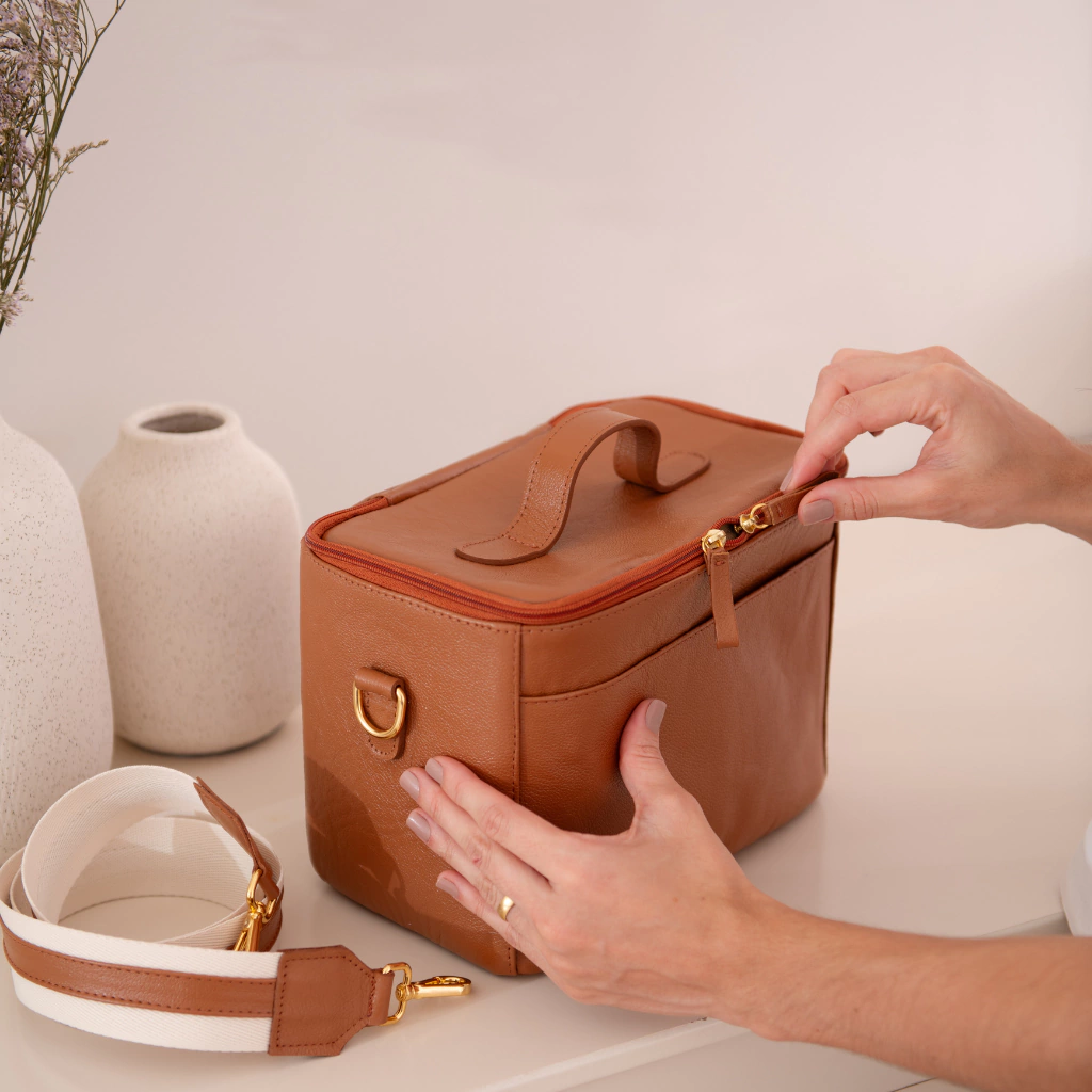 Produzida em couro legítimo, com forro impermeável e manta térmica, é ideal para levar lanches, frutas, bebidas ou qualquer item que precise se manter fresco — seja para a escola, trabalho, passeios ou viagens.